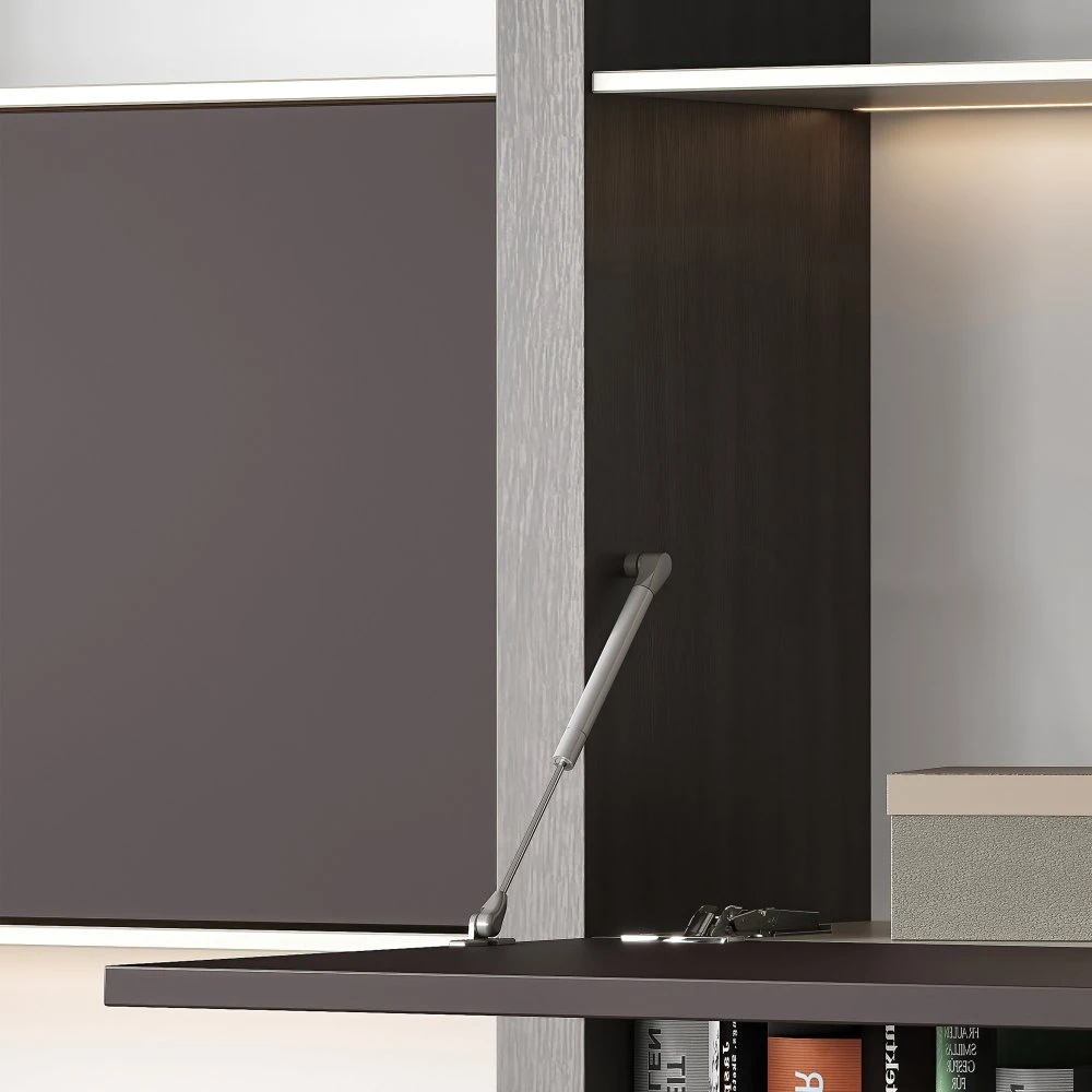 - Pistón amortiguador para puertas abatibles de madera, que proporciona una bajada suave de la puerta en muebles de hogar, cocina y baño.
