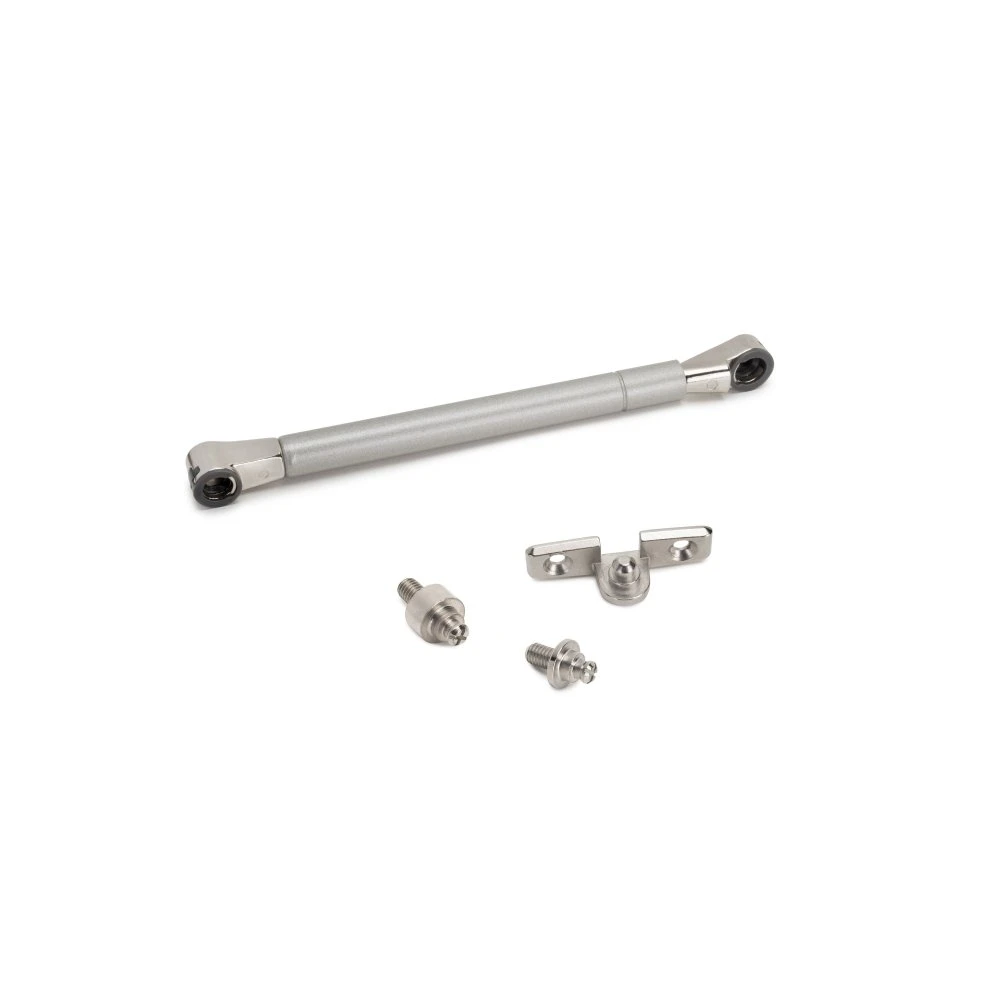 Componentes: 1 pistón abatible, 1 enganche para costado, 1 enganche para puerta de madera, 1 tuerca para embutir M6.