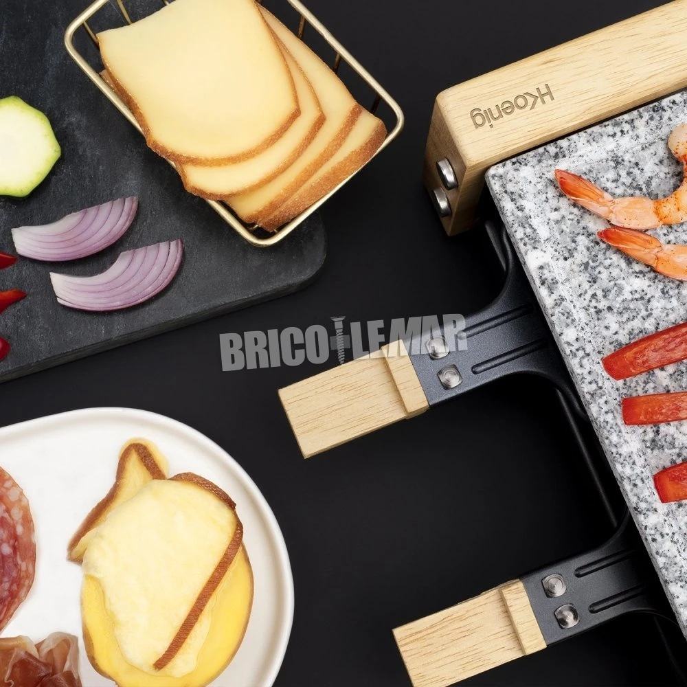 Raclette de madera con plancha de piedra natural 350W 2 personas H.Koenig WOD2