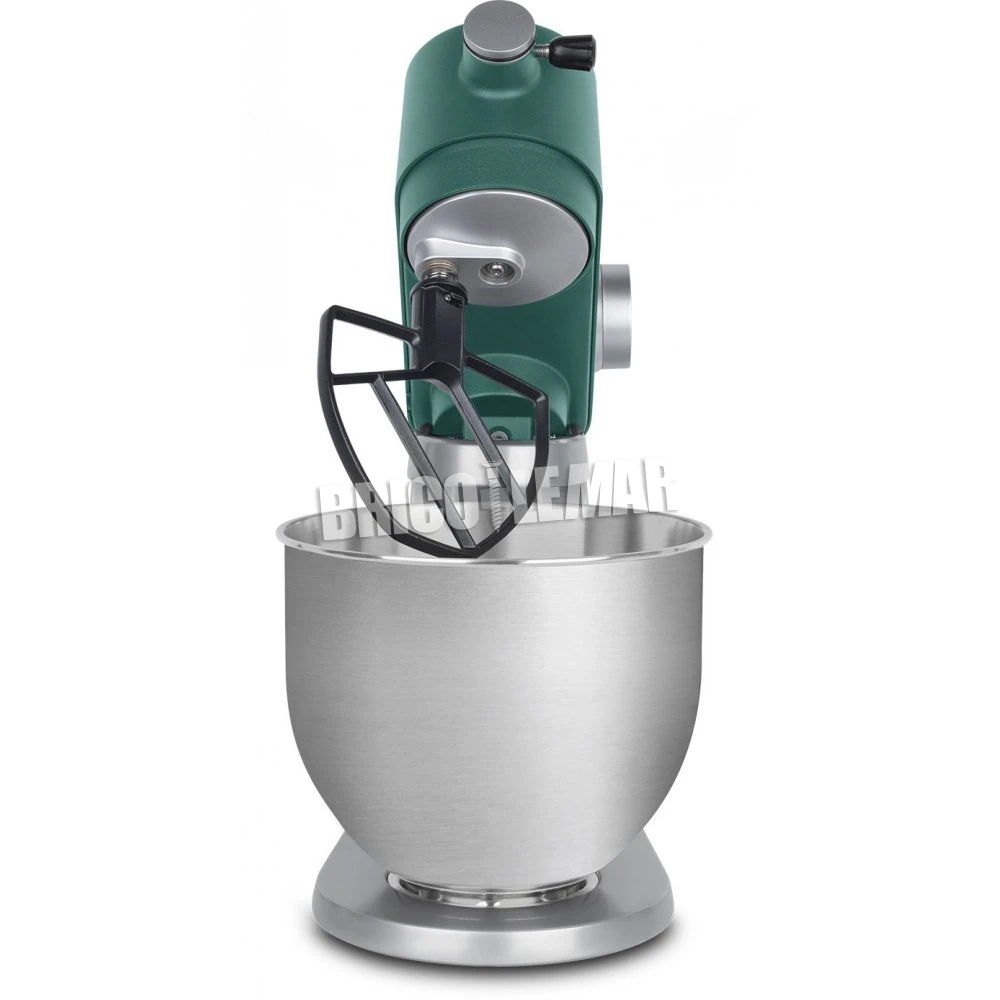 - Accesorios: gancho especial masas pesadas, gancho agitador especial pastas y batidor de varillas, picadora de carne, utensilio para salchichas, utensilio para pasta (rodillo para pasta + cortador de fettuccine + cortador de espagueti), utensilio para ensaladas.