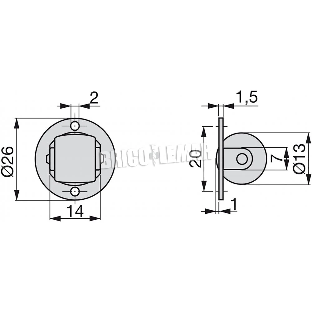 - Placa para atornillar al mueble fabricada en acero cincado con rueda de plástico en color negro.