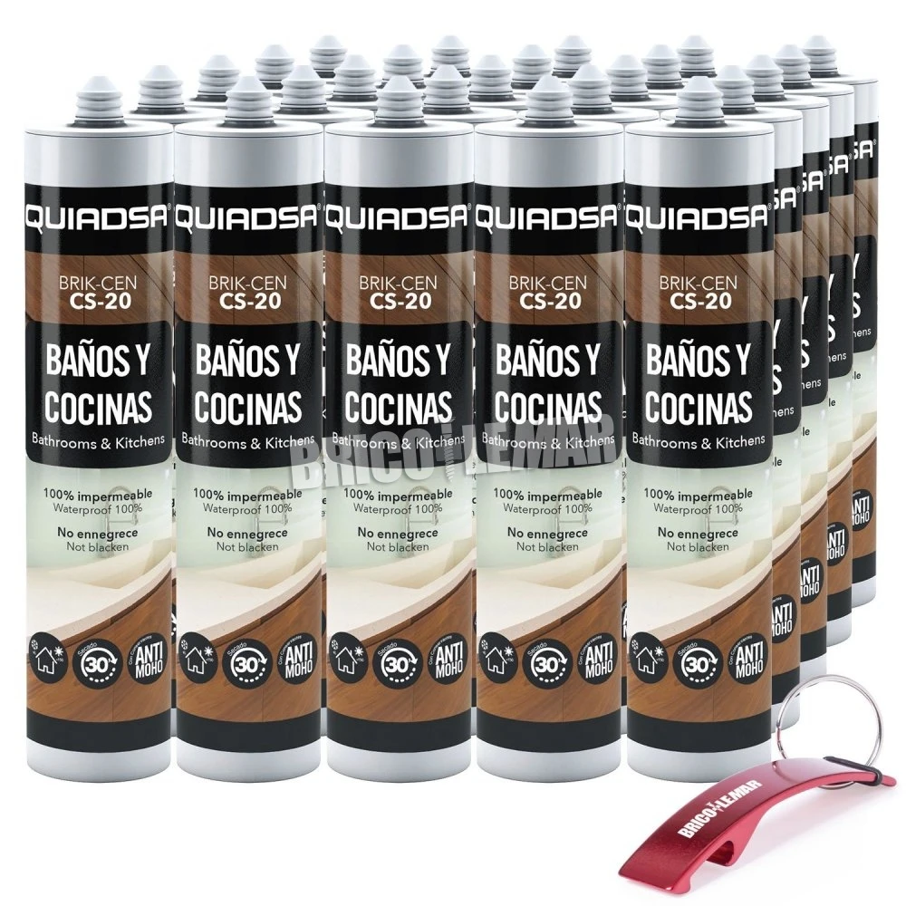 Comprar Sellador de silicona Baños y Cocinas BRIK-CEN CS-20 blanco caja de 25 cartuchos de 280ml Quiadsa