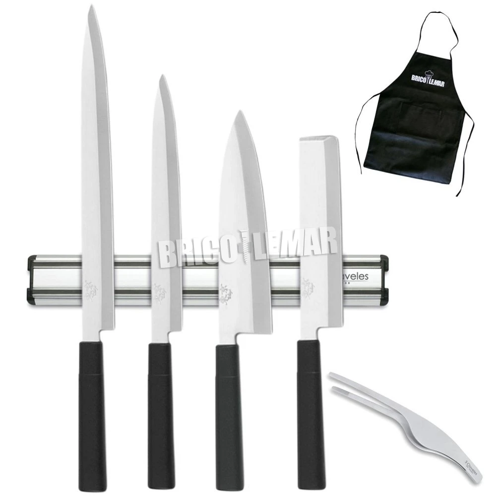 Comprar Set de 4 cuchillos serie Tokyo con barra magnética portacuchillos y pinzas para sushi 3 Claveles