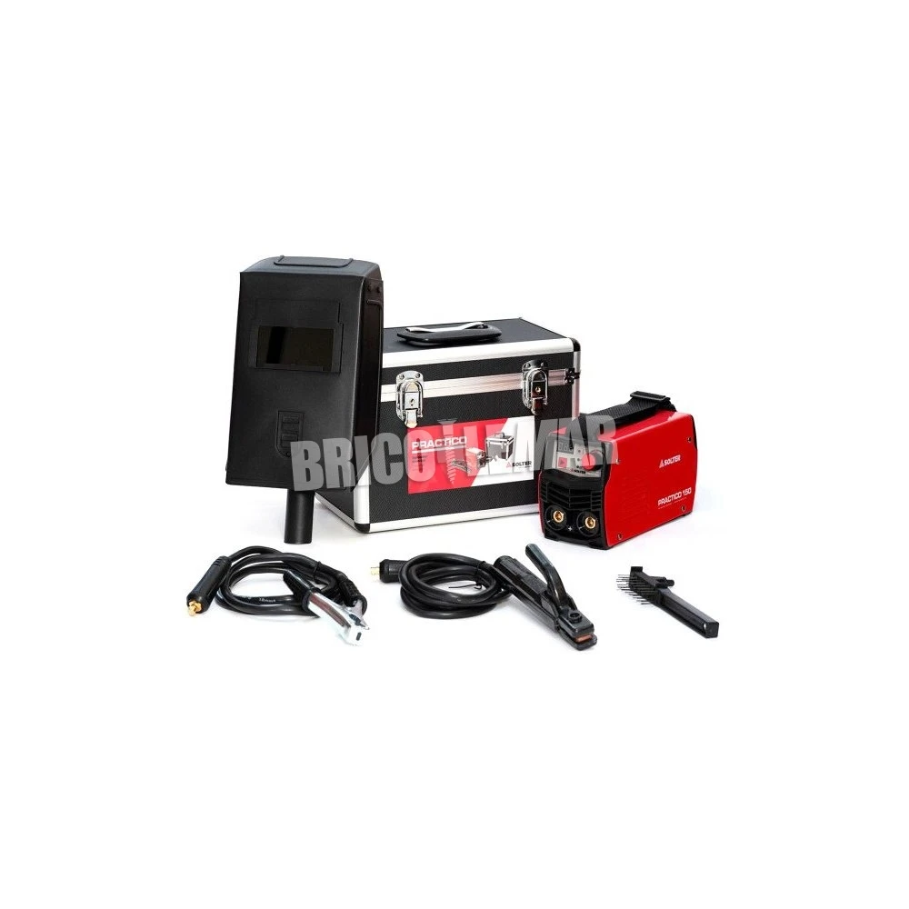 Soldador Inverter de 150Amp al 40% completo con accesorios soldadura, maletín de aluminio, cepillo-piqueta y pantalla de mano. Válido para generador. TIG por raspado. Regulación DIGITAL.