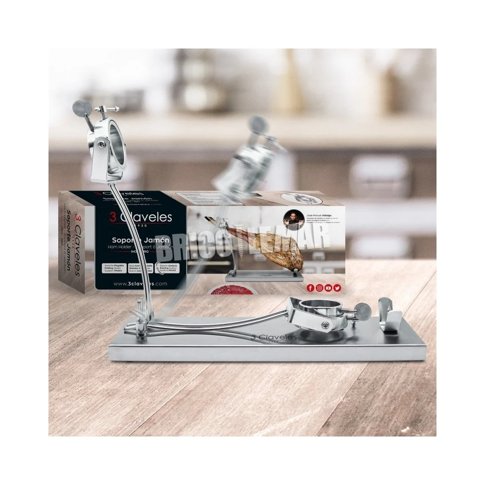 Soporte Jamonero Pro giratorio plegable acero inox 3 Claveles