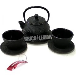 Una tetera elegante con 2 tazas a juego, donde el hierro fundido con el que están fabricadas permite que el té se mantenga caliente durante más tiempo que otras teteras de otros materiales.