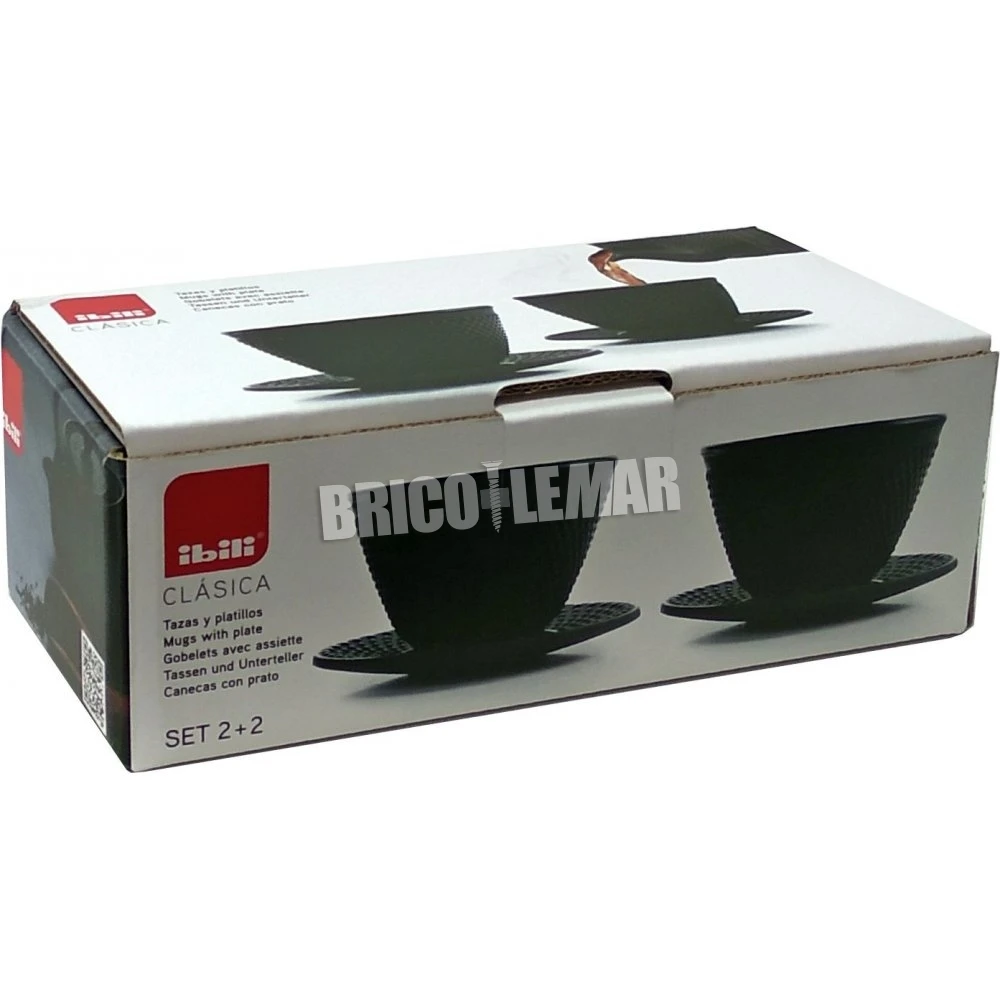 Este kit incluye la tetera Clásica negra de Ibili fabricada con capacidad para 340ml, un juego de 2 tazas con platillos y una reposateteras plana universal e tres patas con tacos con recubrimiento de goma para no marcar la mesa. Todos los artículos están fabricados en hierro fundido con un excelente diseño.